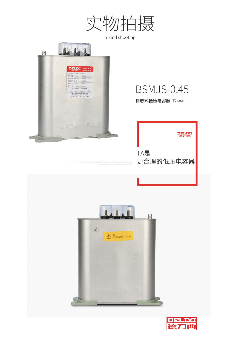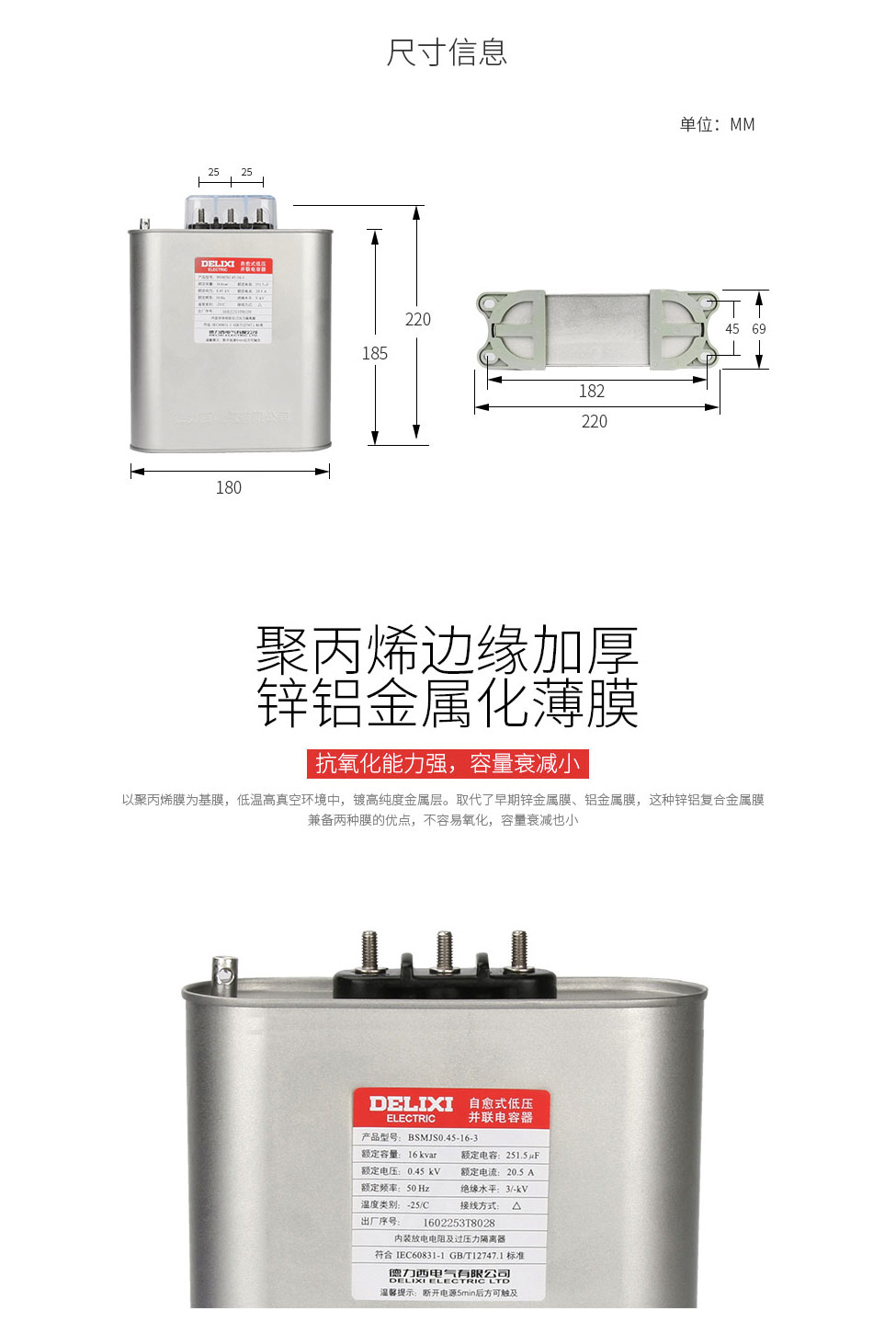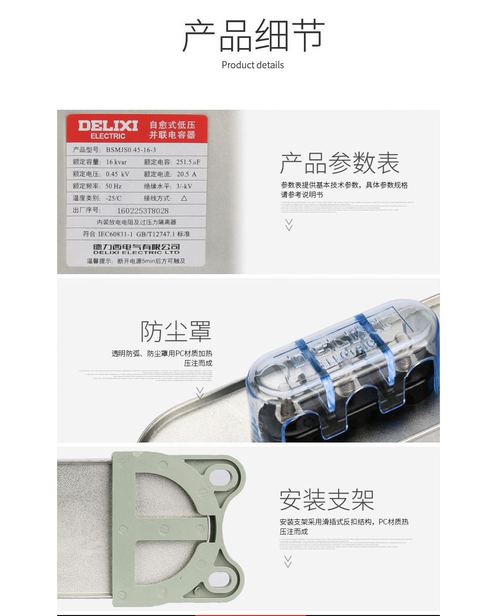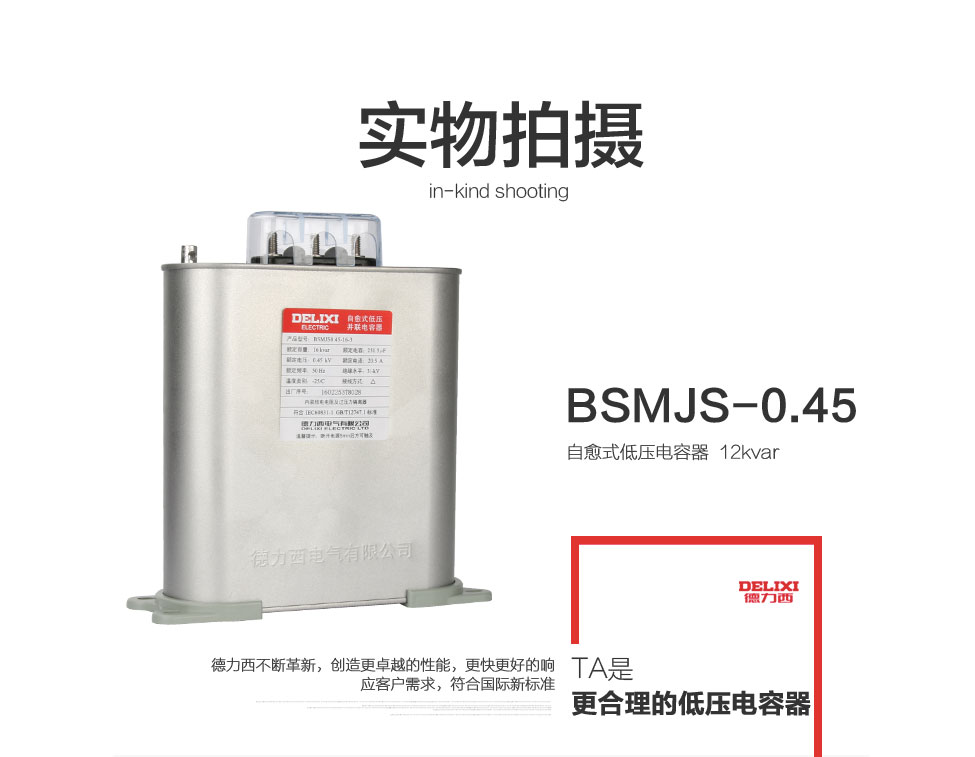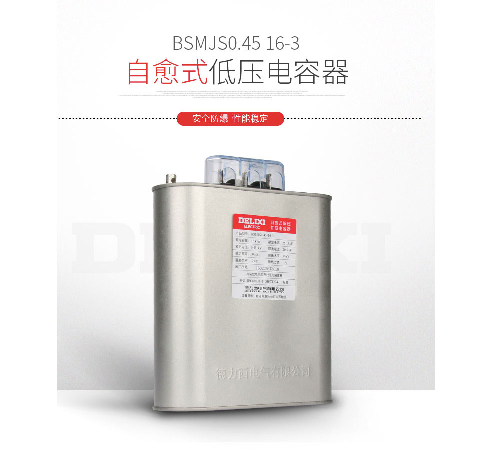自愈式低压电容器BSMJS0.45-16-3并联电力电容无功补偿