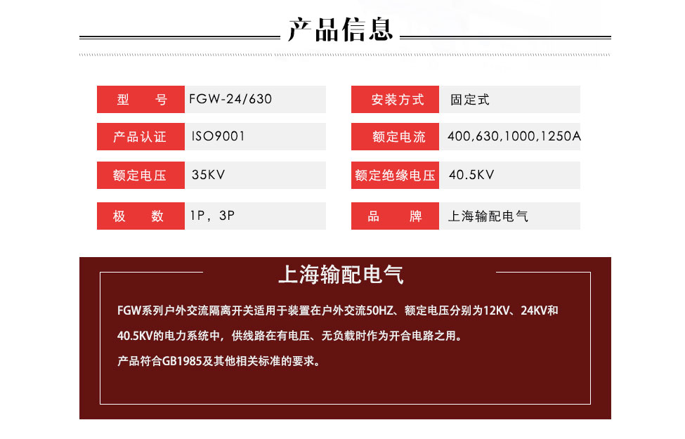上海输配电气FGW-12KV,24KV,35KV系列户外高压隔离开关