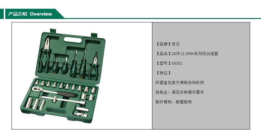 世达综合工具套装,26件套12.5MM系列综合组套,09501
