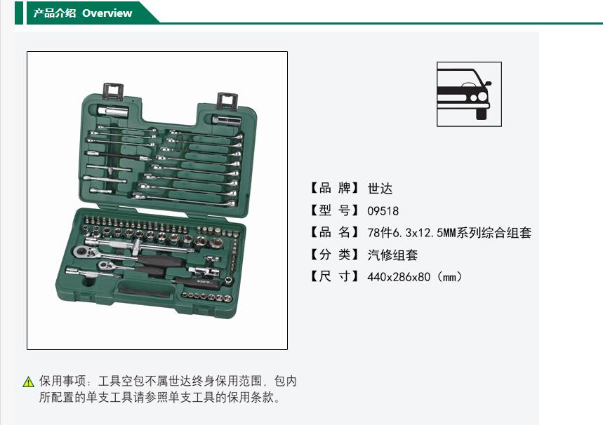 世达综合工具套装,78件套6.3*12.5MM系列综合组套汽修组套,09518