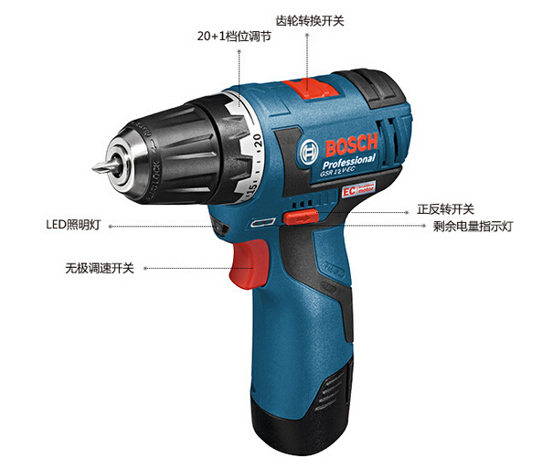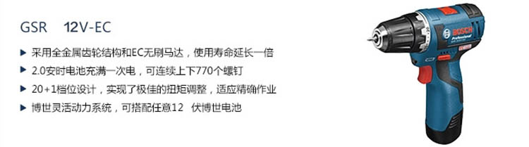 博世充电式电钻,12V锂电 无刷,GSR 12V-EC (2.0Ahx2),06019D4084