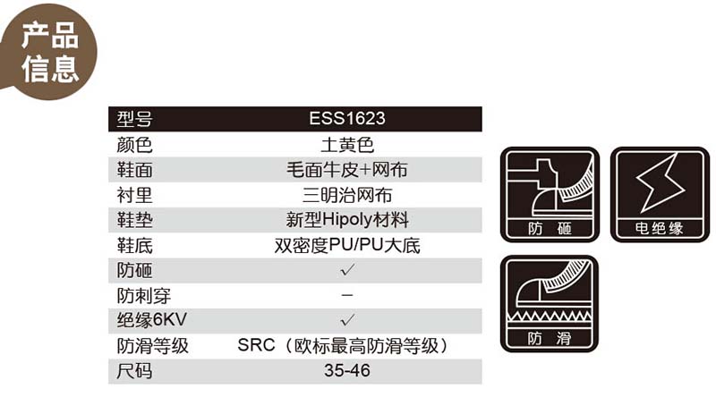 EHS低帮运动款安全鞋,保护足趾,绝缘,土黄色,41