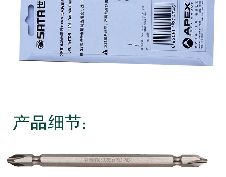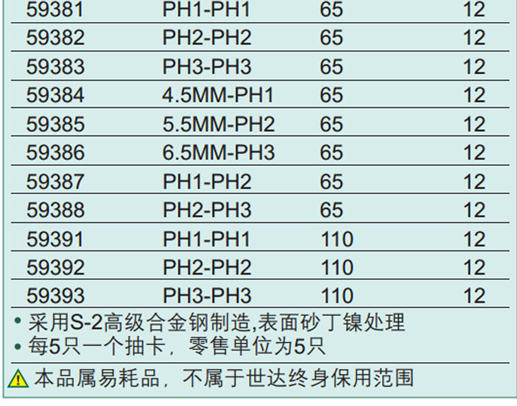 世达工具6.3MM一字十字双头旋具头螺丝批头65/110mm长59381/59391 65MM长双十