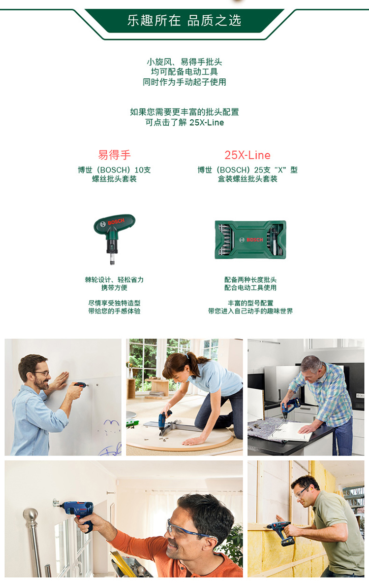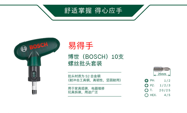 原装博世BOSCH电动工具附件 小圆筒10支装螺丝批头起子头套装