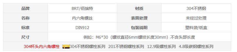 【M3-M6】304紧固件不锈钢内六角螺丝钉 DIN912圆柱头螺栓螺丝M3-M6 系列 M6*10