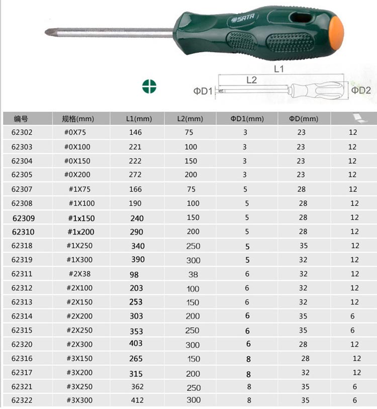 世达十字螺丝刀,塑柄#0x75mm, 62302