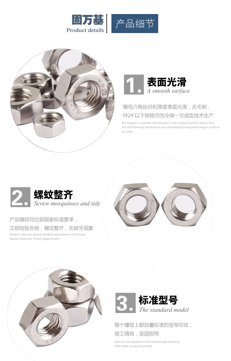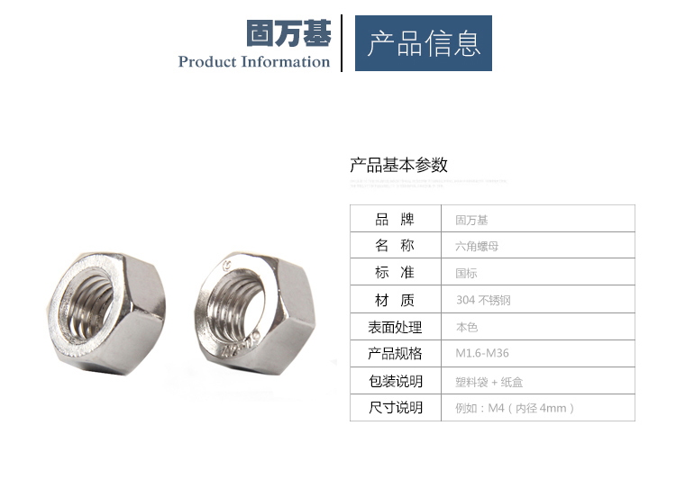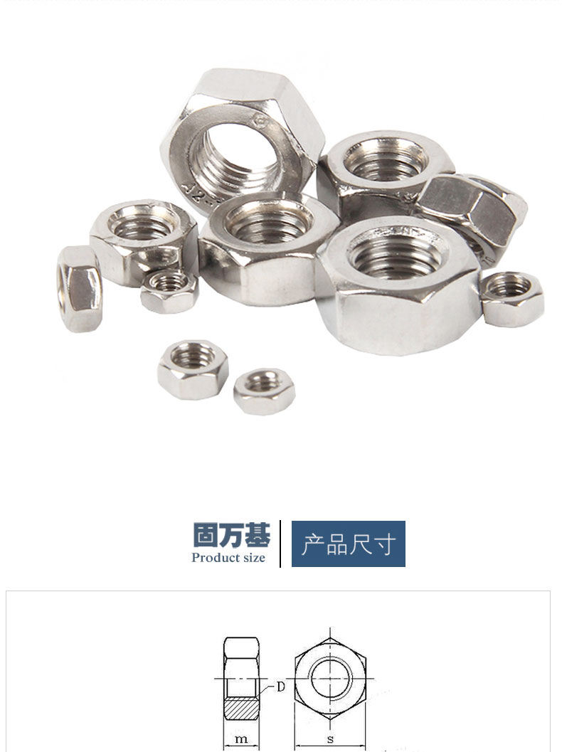 固万基 六角螺母 六角螺帽304不锈钢 螺栓螺丝帽M2M3M4M5M6M8M10-M33 M8