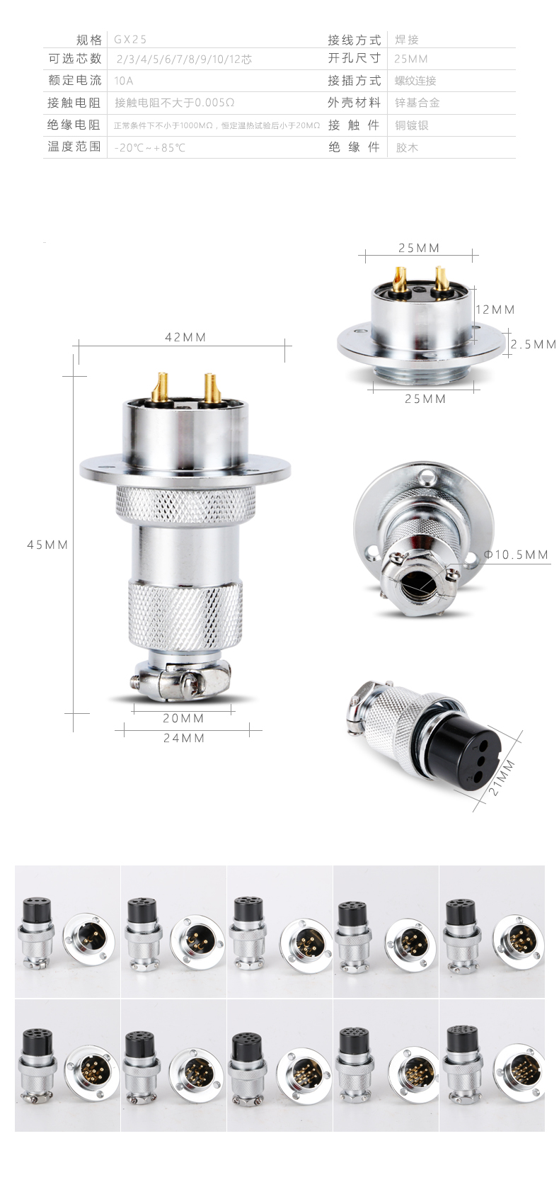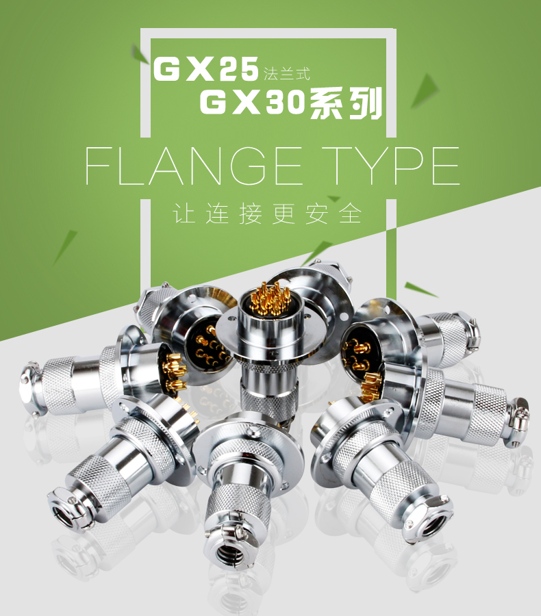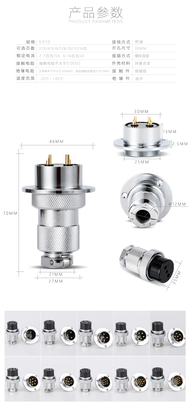 vexg GX-25螺扣式航空插件 连接件GX-30螺纹航空插座法兰多芯 GX25-2芯整套