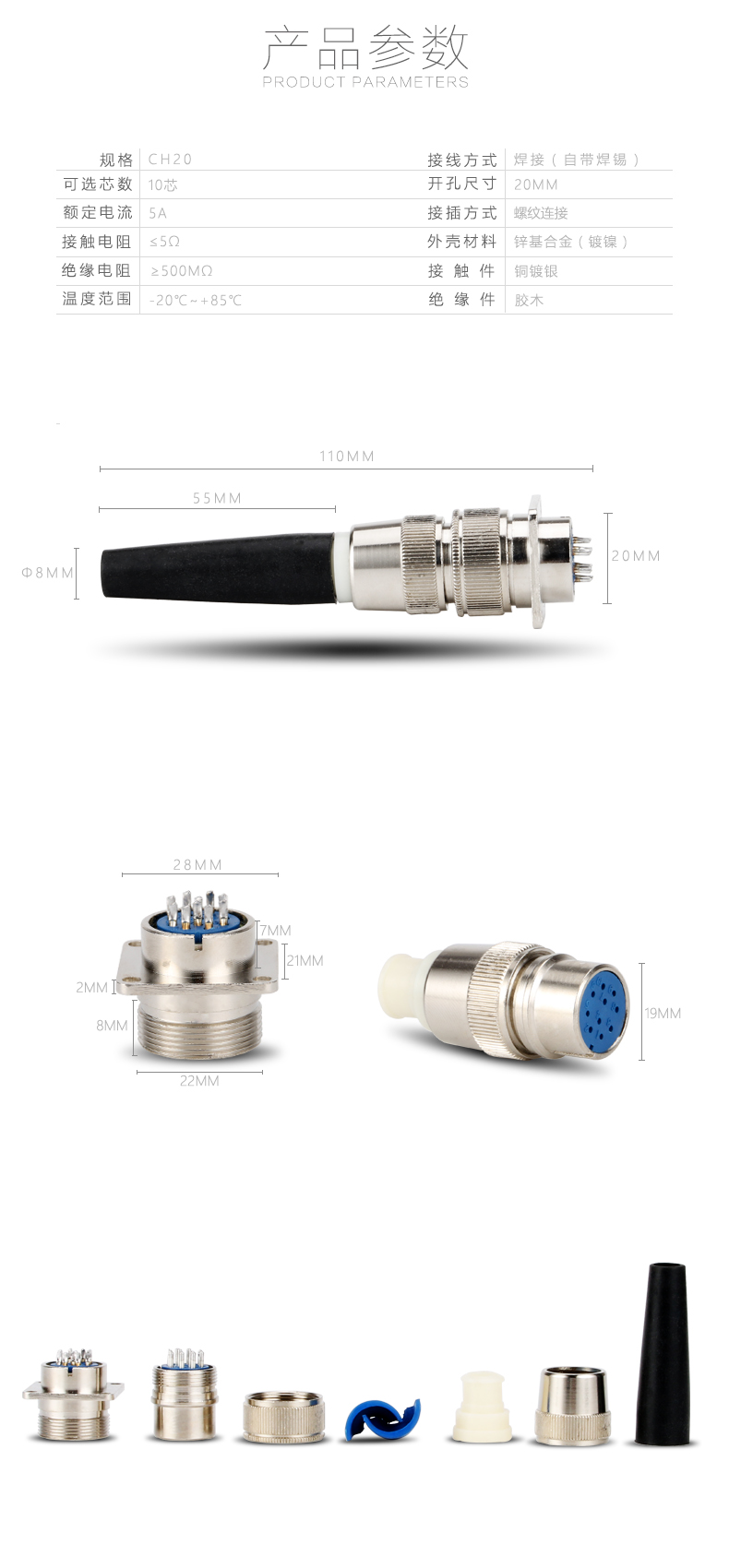 vexg 航空插头CH20 10芯 航空连接器 工业连接器 法兰连接件 CH20整套