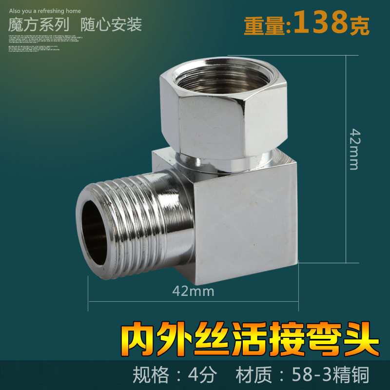 全铜加厚4分内外丝活接铜弯头90度内外牙水泵热水器管道配件接头 内外丝活接弯头