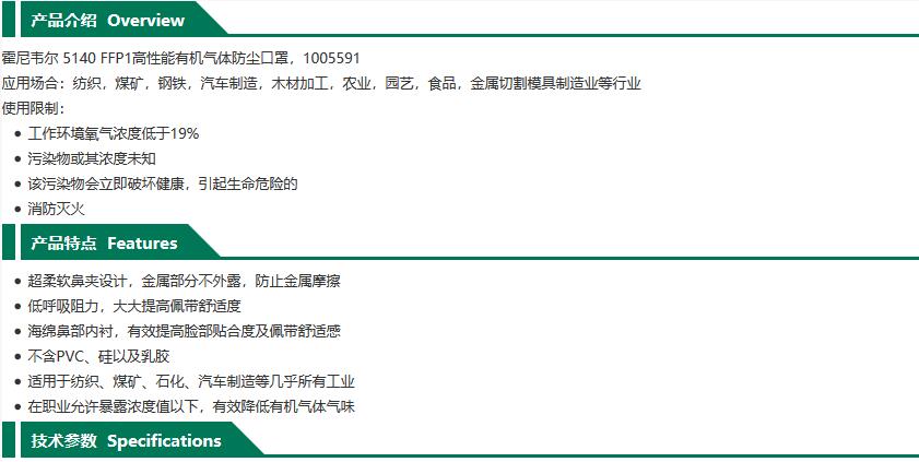 霍尼韦尔 5140 FFP1高性能有机气体防尘口罩,1005591