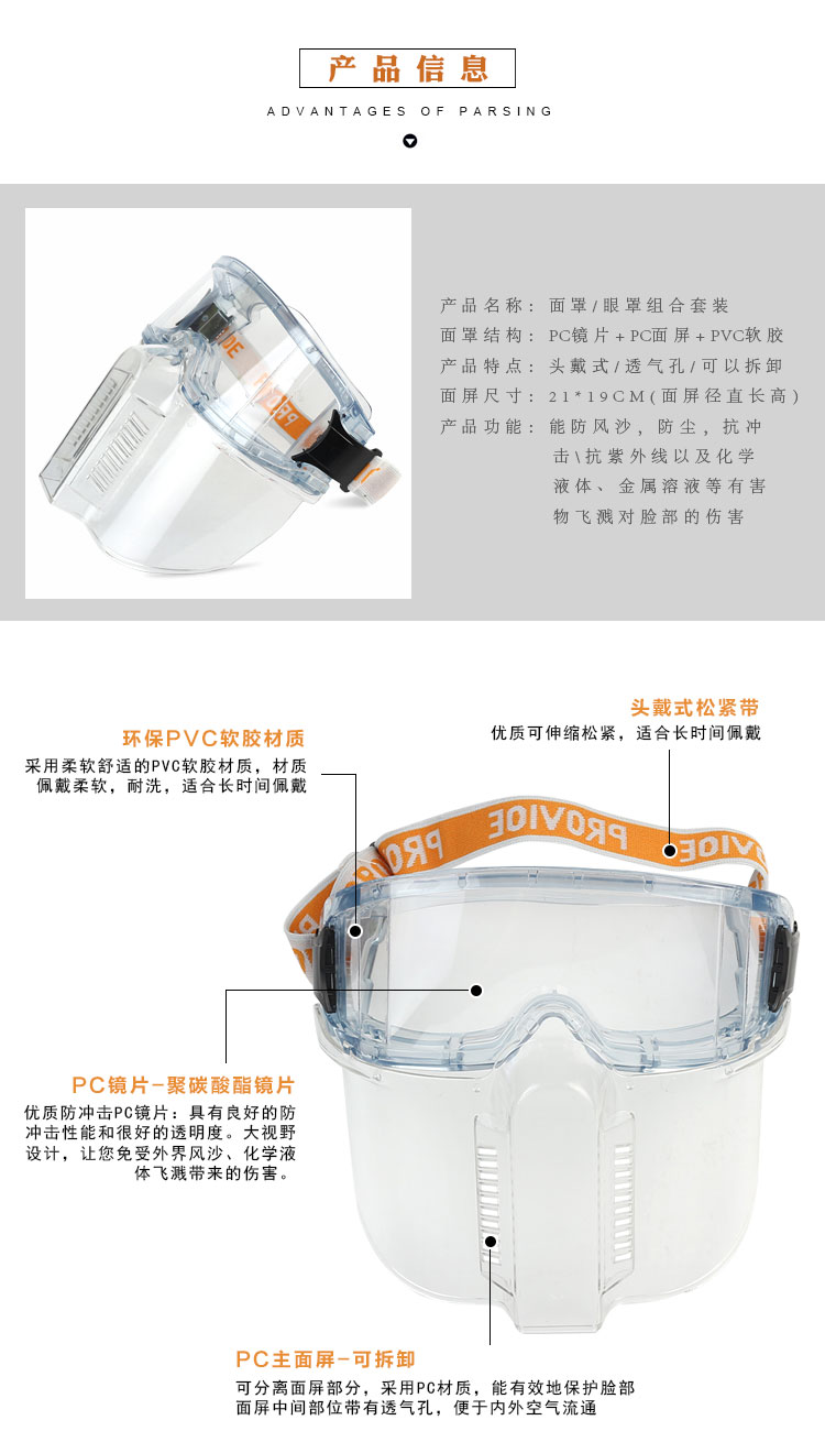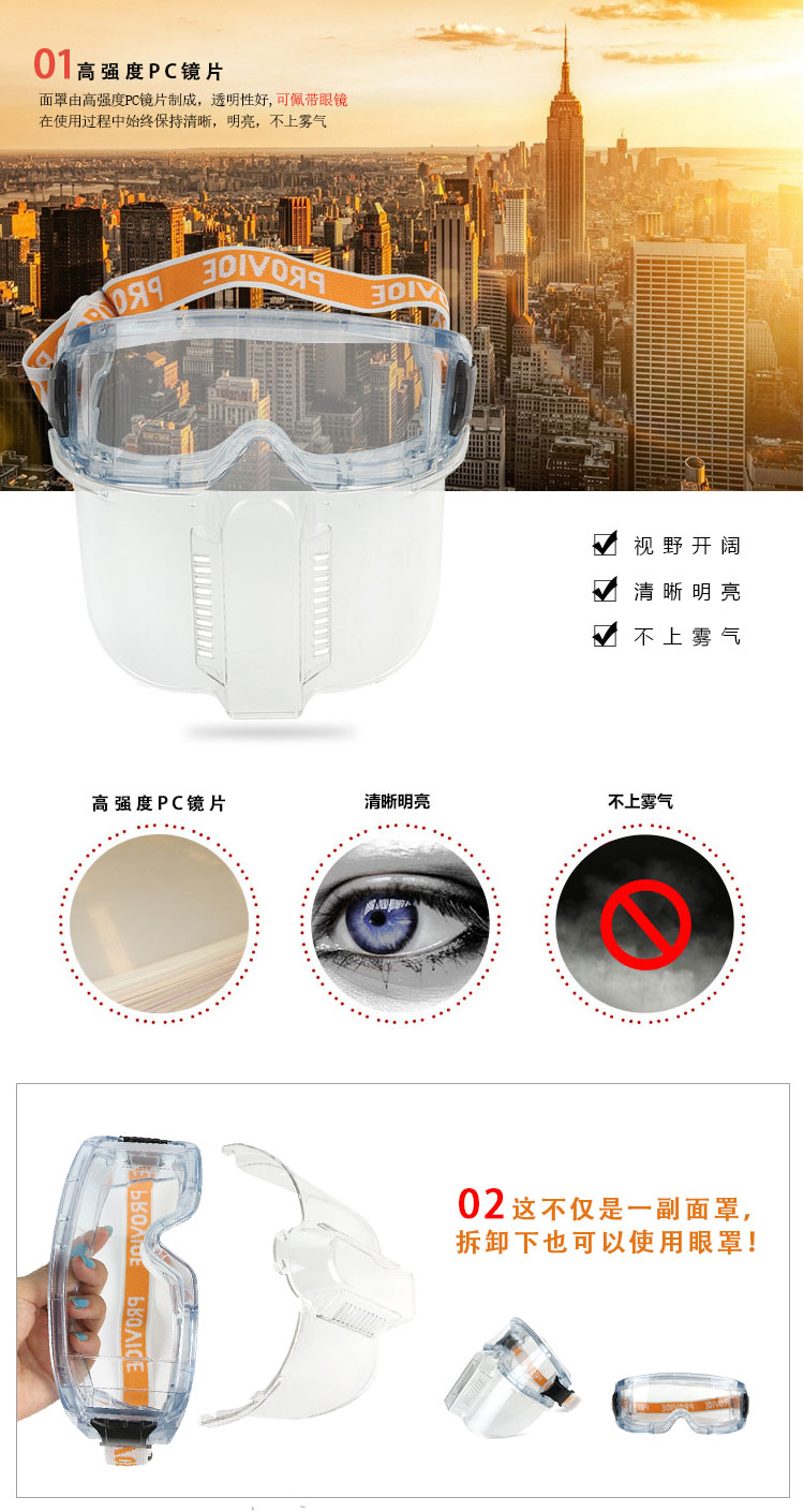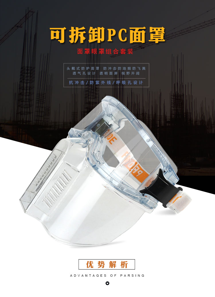 谋福 可拆卸PC面罩眼罩组合 劳保眼镜骑行护目镜 防风防沙抗冲击防油烟面屏 可拆卸