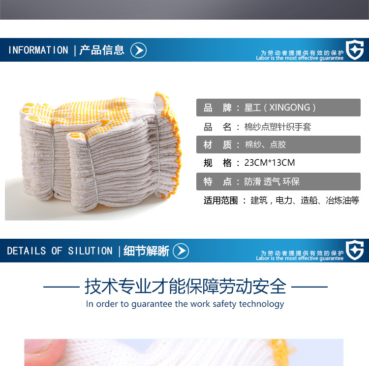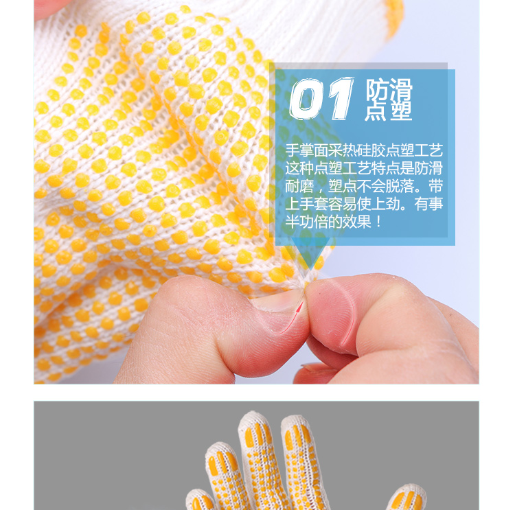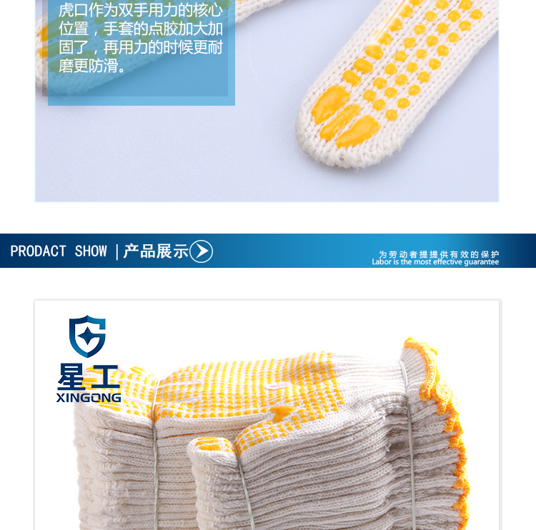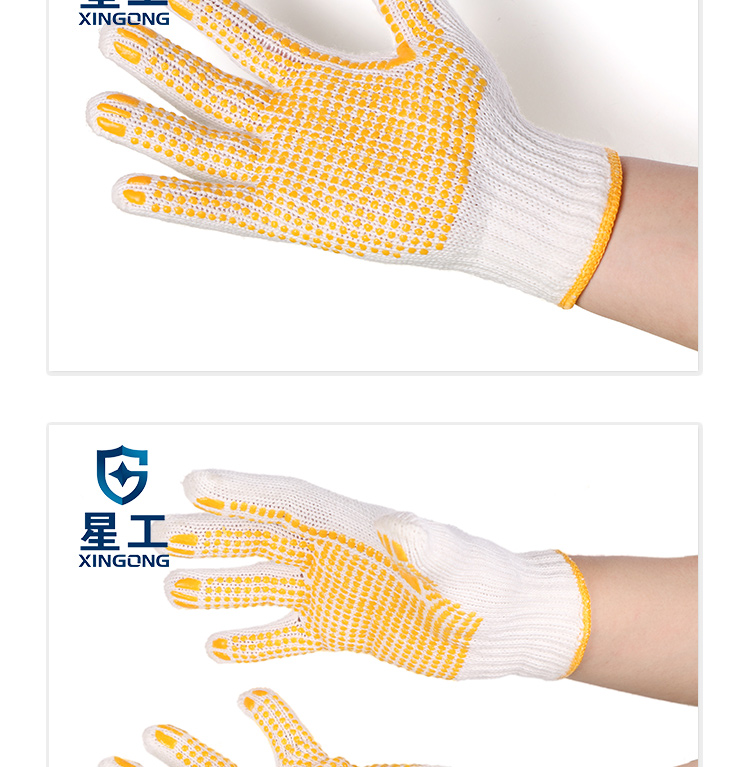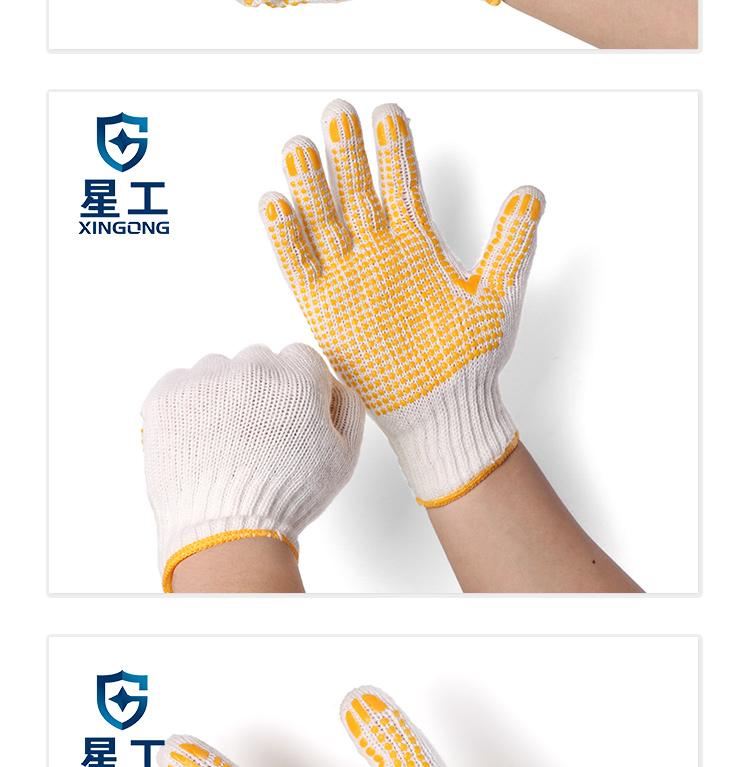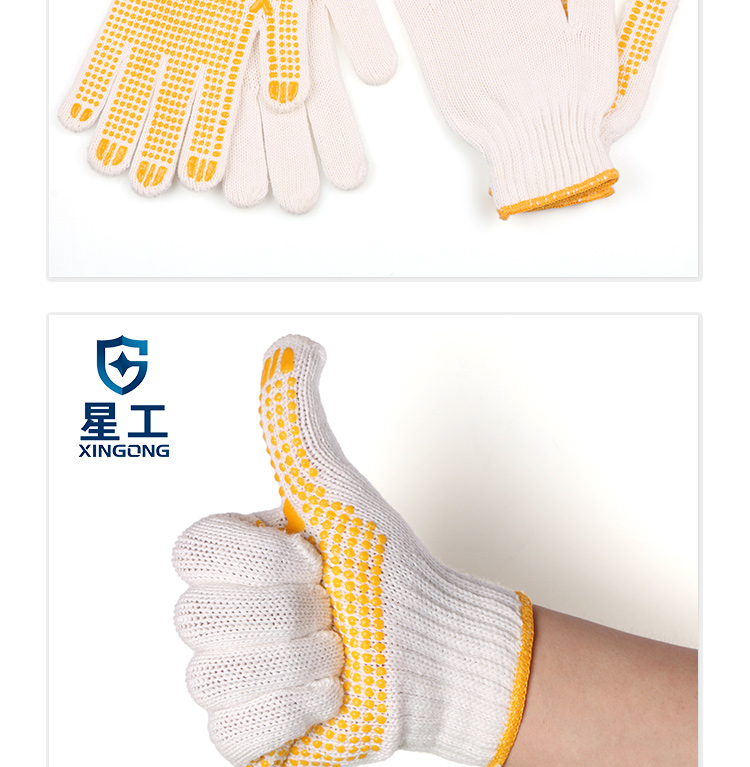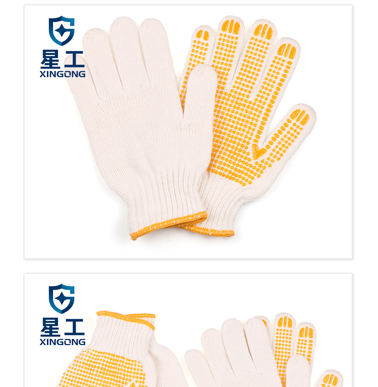 星工(XINGGONG)点塑手套 点珠点胶防滑耐磨劳保手套 透气防滑塑料针织线手套 6付
