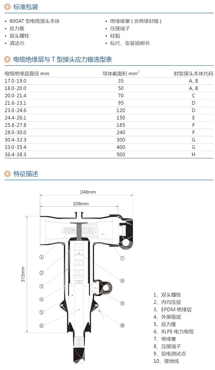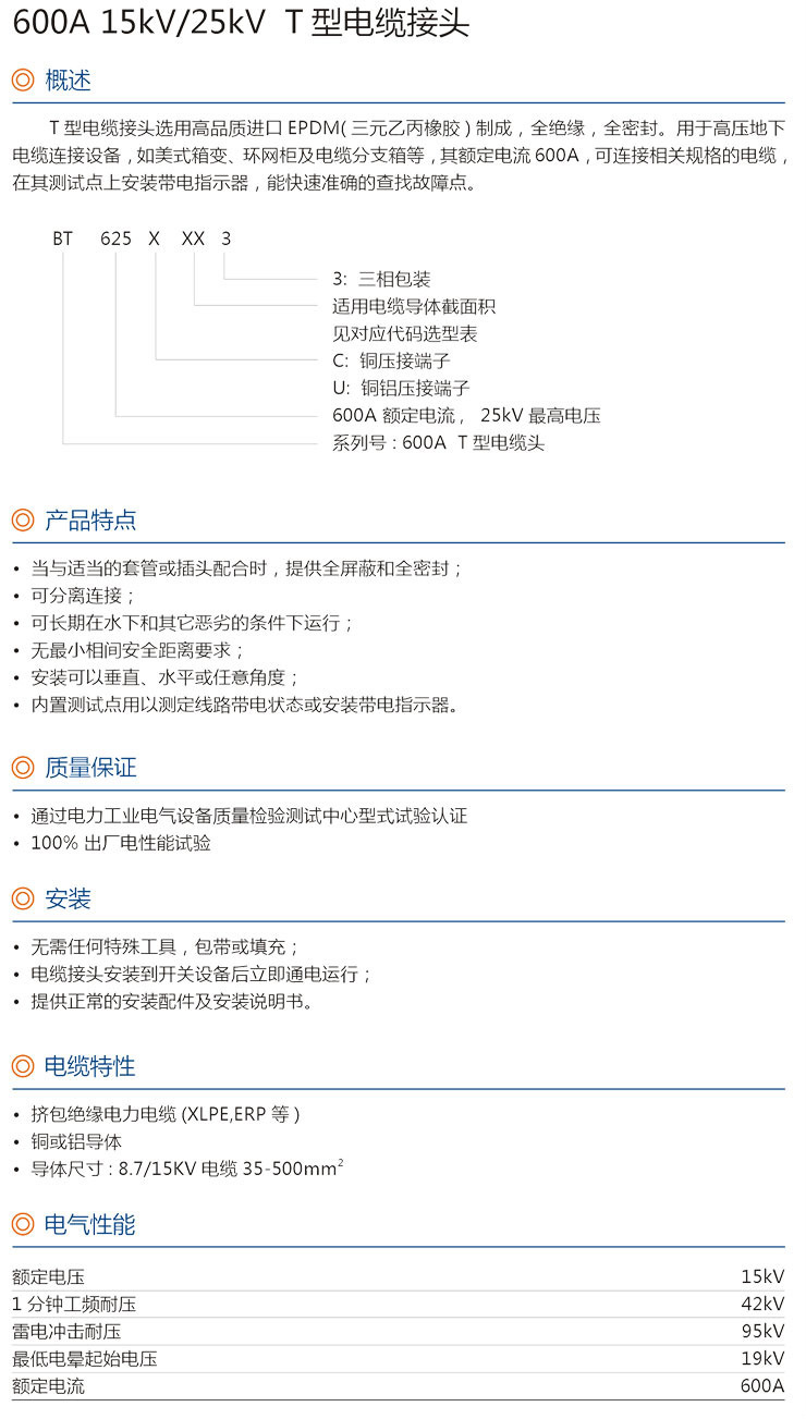 600A 15kV/25kVT型电缆接头高压插拨头