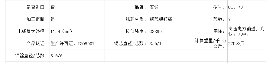 安通Oct-70钢芯铝绞线