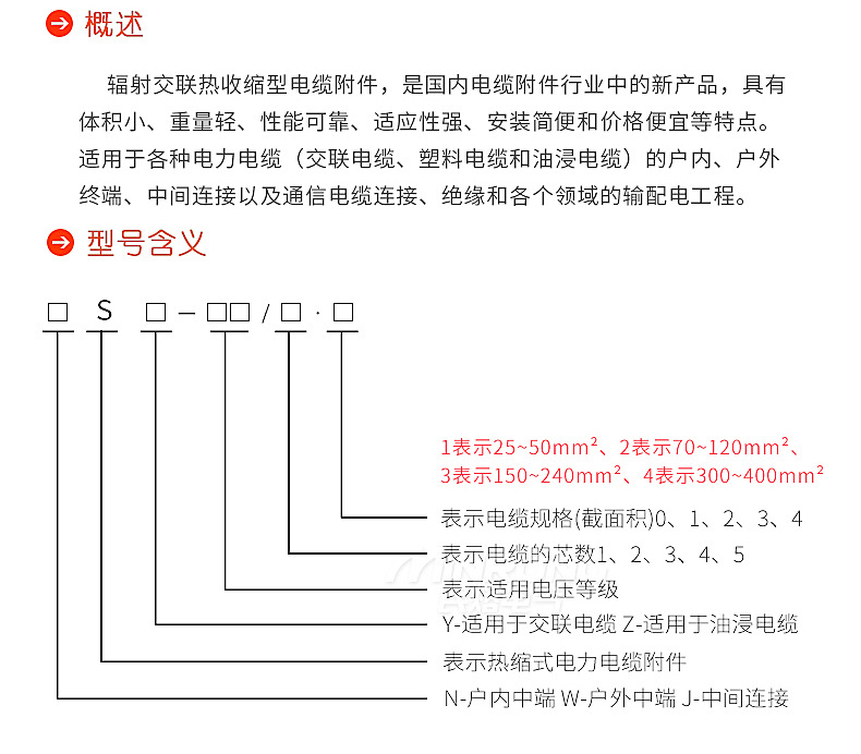 10kV户内套管NSY-10/3三芯热缩式电缆终端头(25-50平方)