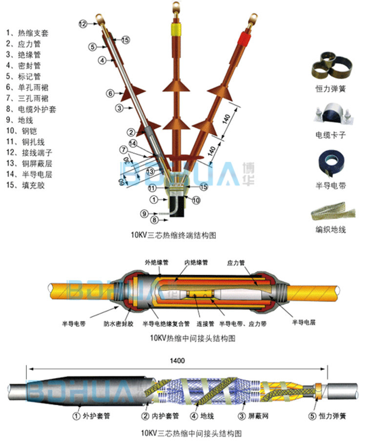 博华10kV 户内热缩式电缆终端头 70-120mm