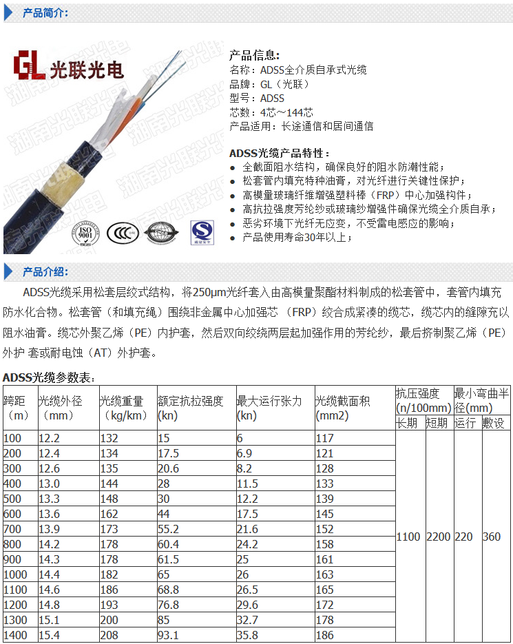 ADSS电力光缆,4芯-12芯-24芯-36芯-48芯
