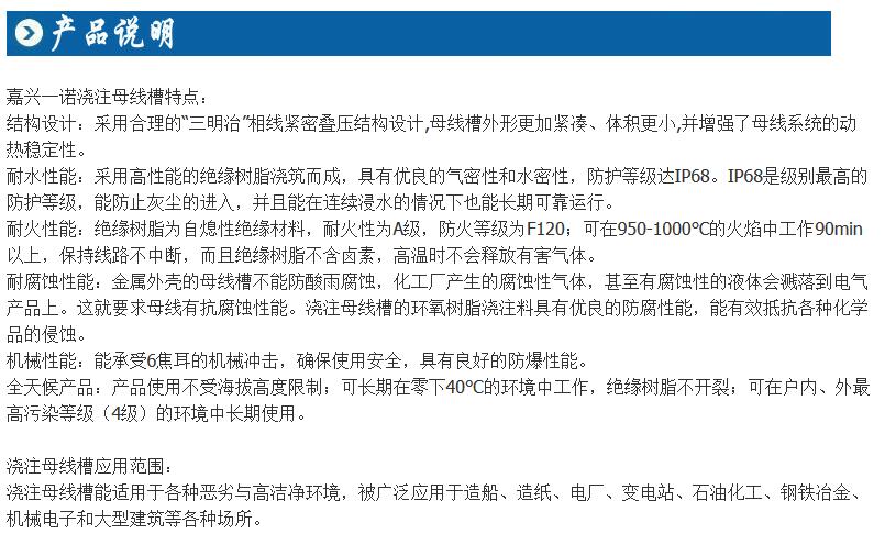 嘉兴一诺母线槽环氧树脂浇注式母线 室外防水全浇筑型母线槽