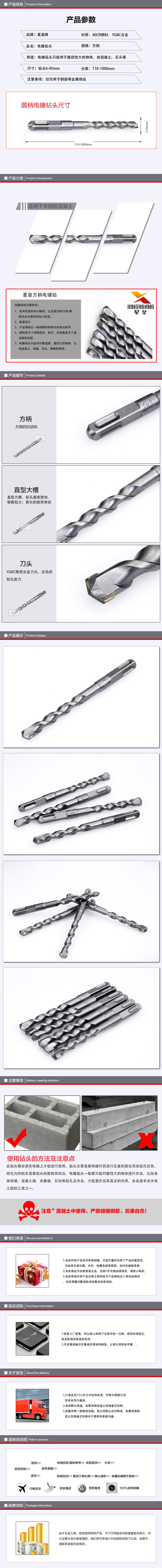 星皇电锤钻头方柄四坑冲击钻头穿墙水泥 混凝土建工钻