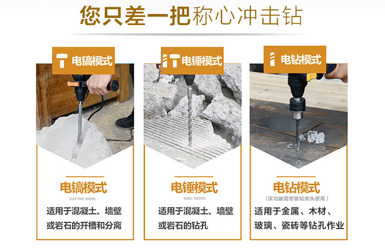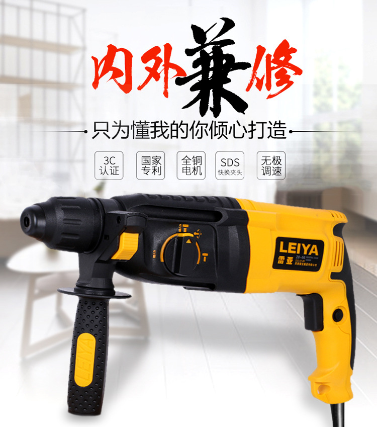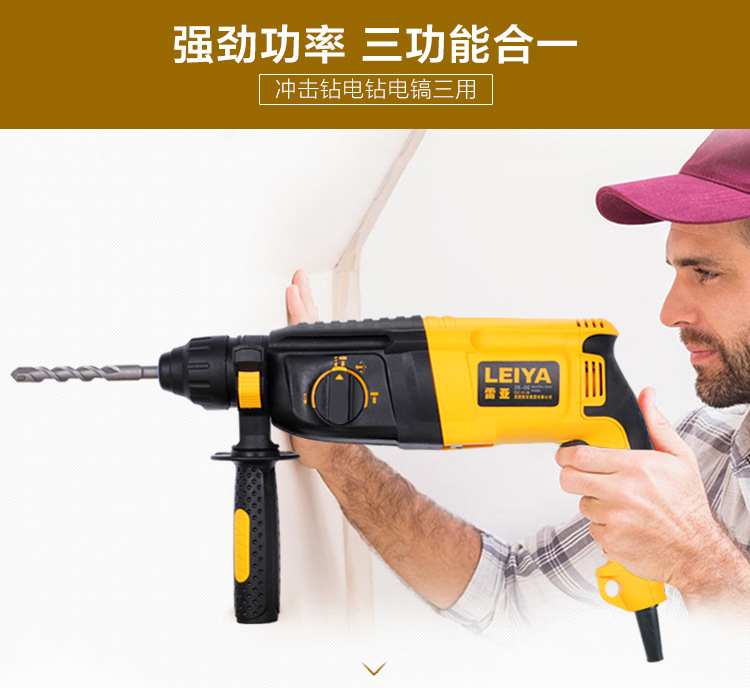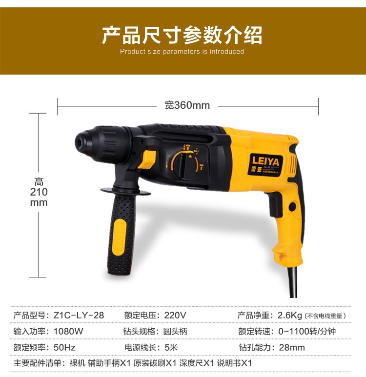 雷亚电动工具1080W多功能冲击钻28-06电钻电锤电镐三用轻型锤钻